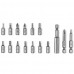 Набір викруток включає 24 біти довжиною 25 мм та 50 мм. Виготовлені із сталі S2, вони відрізняються високою міцністю та стійкістю до пошкоджень. У набір входять найбільш популярні типи біт, включаючи шліцеві, хрестоподібні, Pozidriv, квадратні, Torx TR, шестигранні, Y-подібні, гайкові, трикутні та U-подібні. Крім того, магнітний тримач біт полегшує їх установку та стабілізує під час роботи.