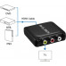 Цей пластиковий конвертер HDMI в AV перетворює цифровий сигнал HDMI на композитний відеосигнал AV (CVBS) і стереофонічний аудіосигнал FL/FR. Він конвертує високоякісний відеосигнал HDMI у звичайні сигнали CVBS (стандартна чіткість 480i, 576i), які можуть прийматися телевізором, відеомагнітофонами VHS, DVD-рекордером. Також він підтримує NTSC і PAL двох стандартних форматів. Не підтримує коди DTS і RAW.