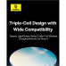 − Потрійна котушка бездротової зарядки підтримує потужність до 15 Вт, забезпечуючи швидку і стабільну зарядку. Ця технологія охоплює більшу індукційну поверхню, мінімізуючи втрати енергії та підвищуючи ефективність процесу заряджання.− Завдяки широкій сумісності, він підходить для більшості телефонів, дозволяючи розміщувати його горизонтально або вертикально. Ви можете зручно встановити свій iPhone, Samsung або Honor в будь-якій орієнтації.− Адаптується до форми телефону. Самозатискні губки автоматично підлаштовуються під рамку вашого пристрою, забезпечуючи стабільність. Просто натисніть кнопку на задній панелі тримача, щоб звільнити телефон.− Гарантує стабільне кріплення на вентиляційному отворі. Міцна ручка забезпечує надійне кріплення. Конструкція більш стійка і сумісна з різними типами вентиляційних отворів автомобіля.− Захищає ваш пристрій. Система захисту запобігає перенапрузі, перевантаженням, перегріву та короткому замиканню.