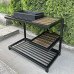 ЖАРОВНЯ мангалу розрахована на 9 шампурів, виконана виконана зі сталі товщиною 4 мм і покрита чорною термостійкою емаллю, що має високий ступінь захисту від температурних впливів до 800°C. Застосування зварних посилень, виготовлених з труби розміром 15х15 мм, значно підвищує жорсткість і здатність протистояти температурним деформаціям при нагріванні.