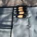 Набір поставляється в стильному чохлі з клапаном на липучці, виготовленому з матеріалу Оксфорд. Унікальна особливість цього чохла - його форма "конверта" в складеному стані, що забезпечує компактне зберігання всіх елементів набору. Цей чохол захищає шампури від факторів зовнішнього середовища та пошкоджень при транспортуванні. Чохол також захищає ваш одяг, речі та салон автомобіля від бруду, сажі та жиру, які можуть залишатися на приладді після приготування їжі. Клапан на липучці забезпечує надійне закривання чохла.