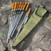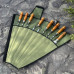 Набір поставляється в стильному чохлі з клапаном на липучці, виготовленому з матеріалу Оксфорд. Унікальна особливість цього чохла - його форма "віяла" в розкладеному стані, що забезпечує зручний доступ до всіх елементів набору. Цей чохол захищає шампури від факторів зовнішнього середовища та пошкоджень при транспортуванні. Чохол також захищає ваш одяг, речі та салон автомобіля від бруду, сажі та жиру, які можуть залишатися на приладді після приготування їжі. Клапан на липучці забезпечує надійне закривання чохла.