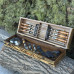 І що може бути краще, ніж набір, який також є витвором мистецтва? Кейс ручної роботи виготовлений з натурального дерева жорстких порід, і тому є не тільки елегантним аксесуаром для зберігання та транспортування, але й додає нотку вишуканості та розкоші у вашій кухні або на пікніку. Для збереження його цілісності рекомендуємо переносити кейс, підтримуючи знизу, оскільки ручка має декоративне призначення.