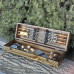 І що може бути краще, ніж набір, який також є витвором мистецтва? Кейс ручної роботи виготовлений з натурального дерева жорстких порід, і тому є не тільки елегантним аксесуаром для зберігання та транспортування, але й додає нотку вишуканості та розкоші у вашій кухні або на пікніку. Для збереження його цілісності рекомендуємо переносити кейс, підтримуючи знизу, оскільки ручка має декоративне призначення.