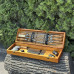 І що може бути краще, ніж набір, який також є витвором мистецтва? Кейс ручної роботи виготовлений з натурального дерева жорстких порід, і тому є не тільки елегантним аксесуаром для зберігання та транспортування, але й додає нотку вишуканості та розкоші у вашій кухні або на пікніку. Для збереження його цілісності рекомендуємо переносити кейс, підтримуючи знизу, оскільки ручка має декоративне призначення.
