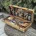 І що може бути краще, ніж набір, який також є витвором мистецтва? Кейс-стіл ручної роботи виготовлений з натурального дерева жорстких порід, і тому є не тільки елегантним аксесуаром для зберігання та транспортування, але й додає нотку вишуканості та розкоші у вашій кухні або на пікніку. Для збереження його цілісності рекомендуємо переносити кейс, підтримуючи знизу, оскільки ручка має декоративне призначення.
