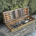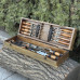 І що може бути краще, ніж набір, який також є витвором мистецтва? Кейс ручної роботи виготовлений з натурального дерева жорстких порід, і тому є не тільки елегантним аксесуаром для зберігання та транспортування, але й додає нотку вишуканості та розкоші у вашій кухні або на пікніку. Для збереження його цілісності рекомендуємо переносити кейс, підтримуючи знизу, оскільки ручка має декоративне призначення.