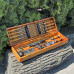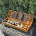 І що може бути краще, ніж набір, який також є витвором мистецтва? Кейс ручної роботи виготовлений з натурального дерева жорстких порід, і тому є не тільки елегантним аксесуаром для зберігання та транспортування, але й додає нотку вишуканості та розкоші у вашій кухні або на пікніку. Для збереження його цілісності рекомендуємо переносити кейс, підтримуючи знизу, оскільки ручка має декоративне призначення.