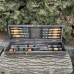І що може бути краще, ніж набір, який також є витвором мистецтва? Кейс ручної роботи виготовлений з натурального дерева жорстких порід, і тому є не тільки елегантним аксесуаром для зберігання та транспортування, але й додає нотку вишуканості та розкоші у вашій кухні або на пікніку. Для збереження його цілісності рекомендуємо переносити кейс, підтримуючи знизу, оскільки ручка має декоративне призначення.