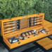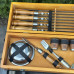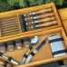 І що може бути краще, ніж набір, який також є витвором мистецтва? Кейс ручної роботи виготовлений з натурального дерева жорстких порід, і тому є не тільки елегантним аксесуаром для зберігання та транспортування, але й додає нотку вишуканості та розкоші у вашій кухні або на пікніку. Для збереження його цілісності рекомендуємо переносити кейс, підтримуючи знизу, оскільки ручка має декоративне призначення.
