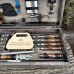 І що може бути краще, ніж набір, який також є витвором мистецтва? Кейс-стіл ручної роботи виготовлений з натурального дерева жорстких порід, і тому є не тільки елегантним аксесуаром для зберігання та транспортування, але й додає нотку вишуканості та розкоші у вашій кухні або на пікніку. Для збереження його цілісності рекомендуємо переносити кейс, підтримуючи знизу, оскільки ручка має декоративне призначення.
