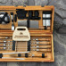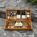 І що може бути краще, ніж набір, який також є витвором мистецтва? Кейс-стіл ручної роботи виготовлений з натурального дерева жорстких порід, і тому є не тільки елегантним аксесуаром для зберігання та транспортування, але й додає нотку вишуканості та розкоші у вашій кухні або на пікніку. Для збереження його цілісності рекомендуємо переносити кейс, підтримуючи знизу, оскільки ручка має декоративне призначення.