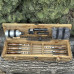 І що може бути краще, ніж набір, який також є витвором мистецтва? Кейс ручної роботи виготовлений з натурального дерева твердих порід, і тому є не тільки елегантним аксесуаром для зберігання та транспортування, але й додає нотку вишуканості та розкоші у вашій кухні або на пікніку. Для збереження його цілісності рекомендуємо переносити кейс, підтримуючи знизу, оскільки ручка має декоративне призначення.