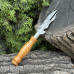 Вилка з дерев'яною ручкою для зняття м'яса з шампура, виготовлена з нержавіючої сталі, призначена для зручного та безпечного поводження з м'ясом на шампурах при готуванні на грилі або багатті.