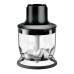 Нічого зайвого, тільки найнеобхідніше. Замість металевої ноги блендера можна підключити віночок або насадку малий подрібнювач. Перший застосовується для змішування продуктів у відкритому посуді. Малий подрібнювач являє собою пластикову ємність 0,5 л об’єму. У ній дуже зручно перемішувати, наприклад, невеликі порції овочевих салатів, а також готувати поживні суміші для дітей. В принципі, всі насадки є досить універсальними, а також підключаються і від’єднуються від моторного блоку одним рухом, за рахунок системи EasyClick Plus.